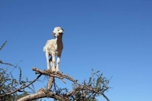 Goats grazing on precariouslysteep hillsides is a common sight, but perched high atop the branches of a tree? That's a sight you will only see if you go all the way to the North African country of Morocco.